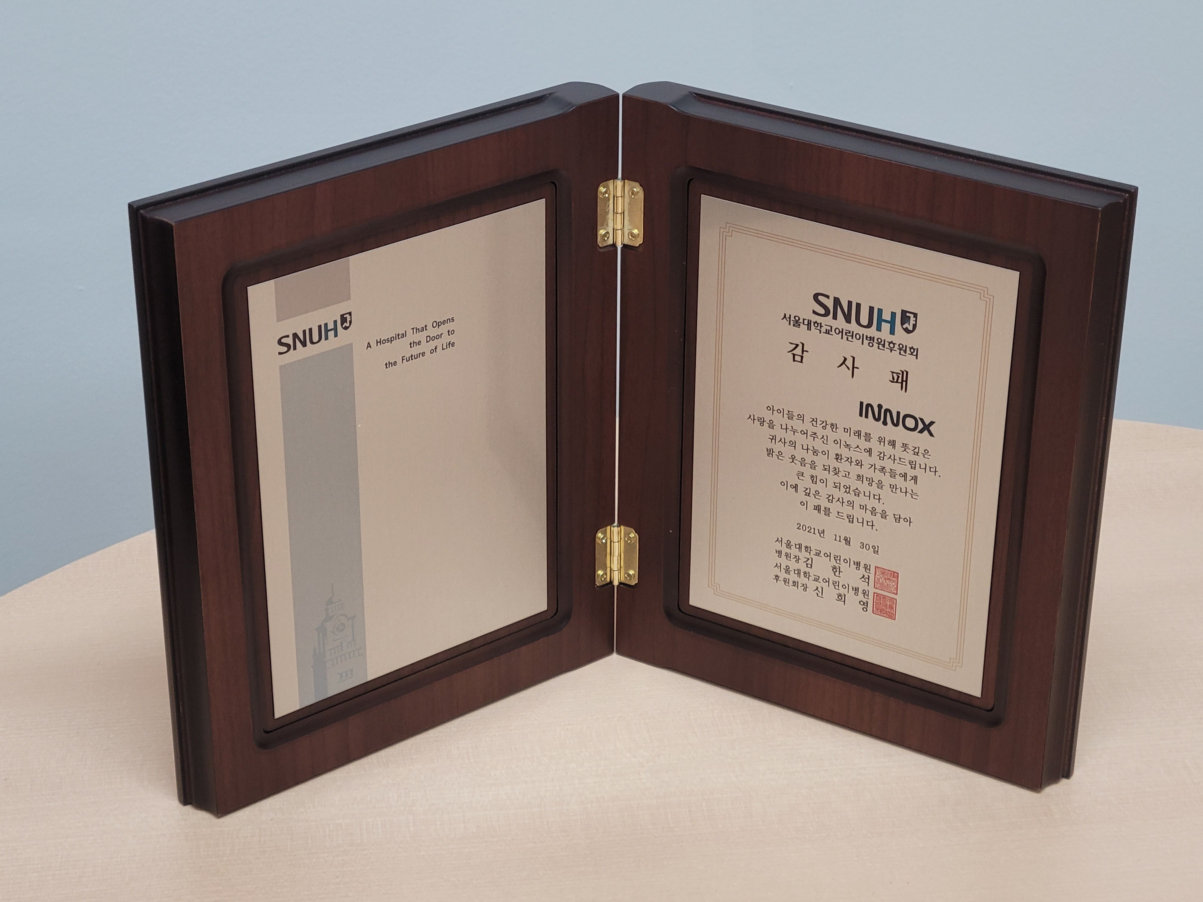 지난 11월 30일, 이녹스는 지난 해에 이어 올 해도 서울대학교 어린이병원을 찾아 경제적인